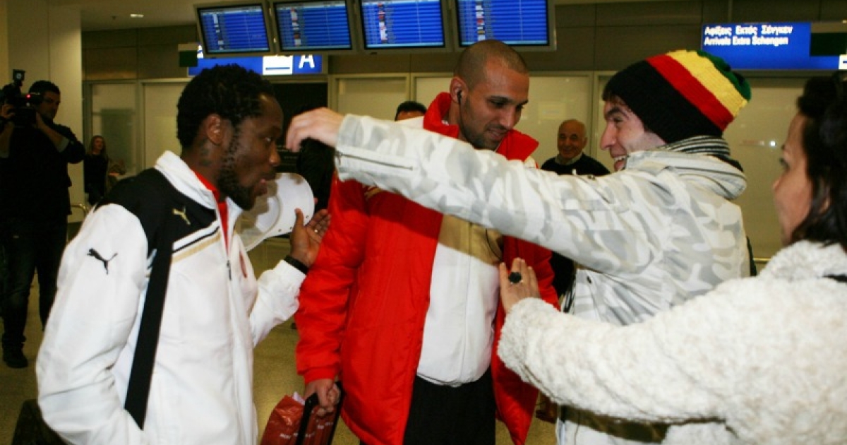 Παραπάνω από 30 άτομα περίμεναν υπομονετικά στο αεροδρόμιο «Ελευθέριος Βενιζέλος» την άφιξη της αποστολής του Ολυμπιακού. Οι Πειραιώτες έφτασαν στην Αθήνα μετά από μεγάλη και πολύωρη ταλαιπωρία στους δρόμους αλλά και το αεροδρόμιο της Μόσχας λίγο μετά τη 1 τα ξημερώματα (1.07) και αποθεώθηκαν από τον κόσμο τους, που έσπευσε να τους χειροκροτήσει, να τους αγκαλιάσει αλλά και να τους συγχαρεί.
