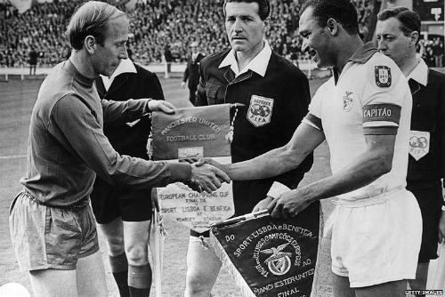 Ο Μάριο Κολούνα (δεξιά) με τον Μπόμπι Τσάρλτον πριν από τον τελικό του Πρωταθλητριών του 1968.