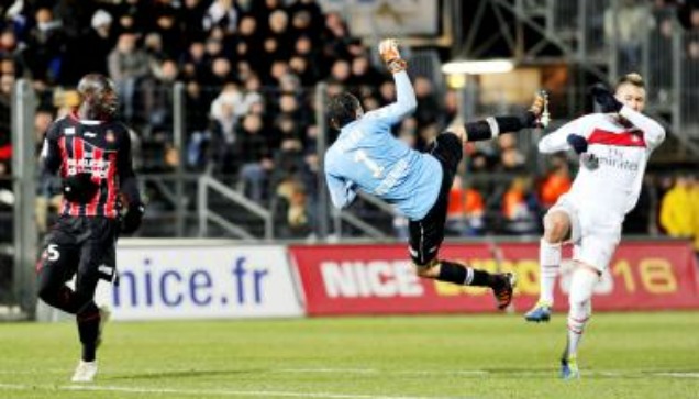 ΦΩΤΟΓΡΑΦΙΑΣ: Ο Νταβίντ Οσπίνα κάνει εντυπωσιακή έξοδο... τρομάζοντας τον Ζερεμί Μενέζ στην ισοπαλία 0-0 της Νις με την Παρί στη Νίκαια.