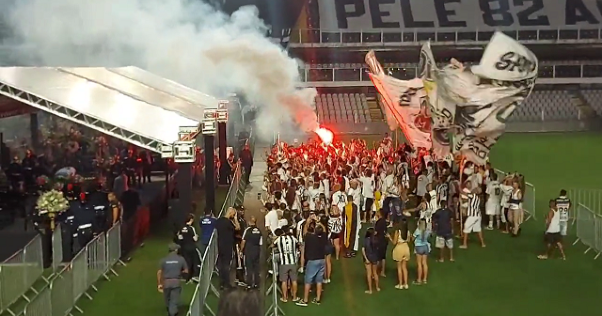 Με εντυπωσιακό τρόπο αποχαιρέτησαν τον Πελέ οι φίλοι της Σάντος οι οποίοι βρέθηκαν στο γήπεδο της ομάδας τους κρατώντας καπνογόνα και τραγουδώντας δυνατά.
