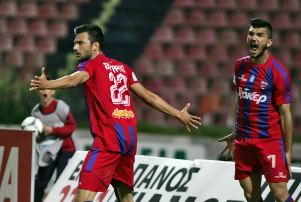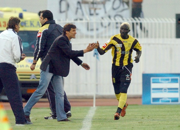 Ο Καραγεωργίου συγχαίρει τον Ογκουνσότο για το γκολ που πέτυχε στο Περιστέρι. Εκείνη η νίκη (2-1) του Εργοτέλη αποδείχθηκε καθοριστική, καθώς «έριξε» τον Ατρόμητο.