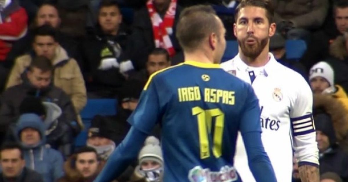 Ο Σέρχιο Ράμος τράβηξε τα βλέμματα τις προηγούμενες μέρες στους αγώνες της Ρεάλ με την Σεβίλλη και το έκανε ξανά σε αυτόν των Merengues με την Θέλτα για το Copa del Rey. Η ομάδα του Ζινεντίν Ζιντάν έχασε 1-2 στο πρώτο σκέλος των προημιτελικών στο Santiago Bernabeu και ο σέντερ μπακ, όπως φαίνεται στο video, έφτυσε τον συμπαίκτη του στην Εθνική ομάδα της Ισπανίας, Ιάγο Ασπας.