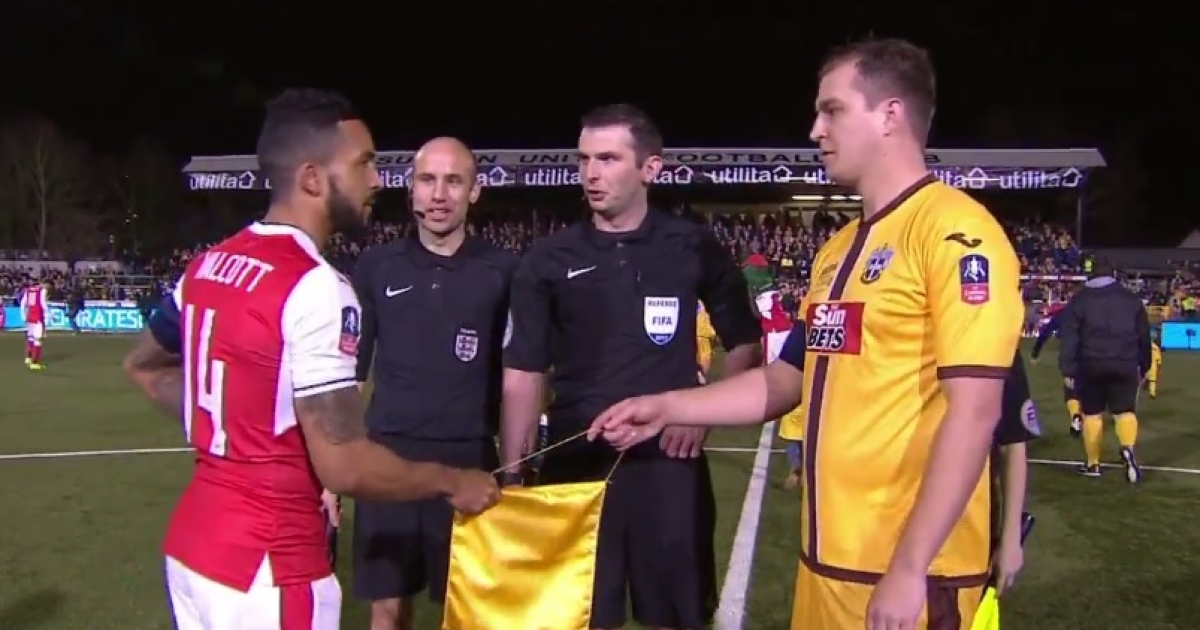 Πριν από την έναρξη του παιχνιδιού στο Garden Green Lane, ο Θίο Γουόλκοτ πήγε στο στρίψιμο του νομίσματος με... άδεια χέρια, σε αντίθεση με τον έτερο αρχηγό της Σάτον, που του δώρισε ένα μικρό λάβαρο του σωματείου του.