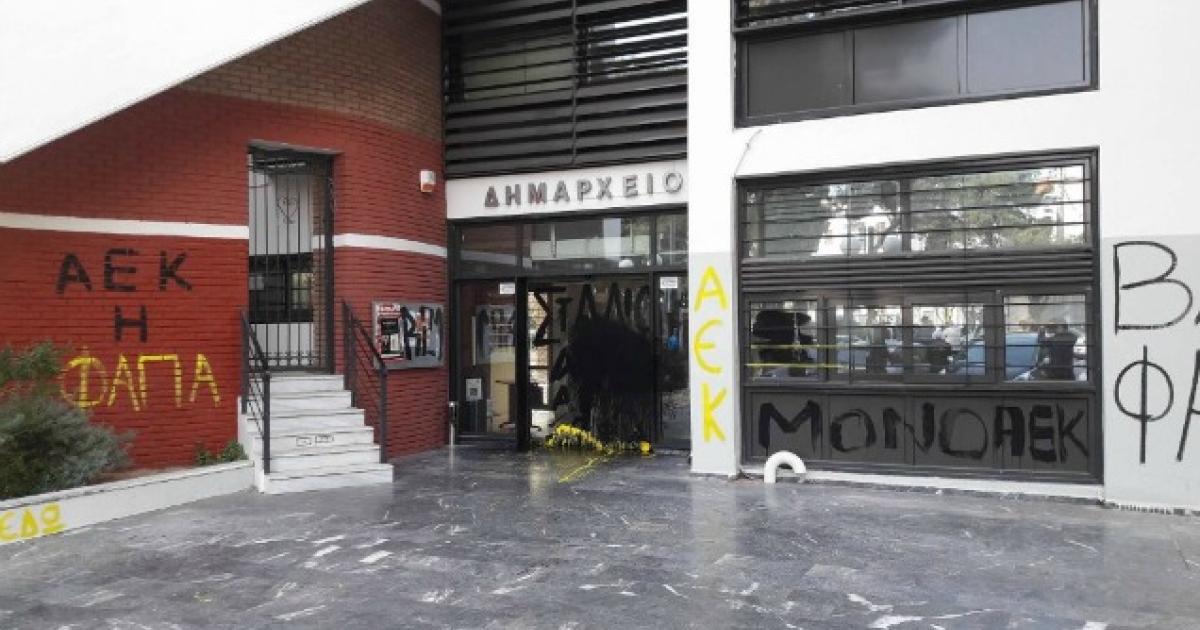 «Γήπεδο στη Νέα Φιλαδέλφεια» και «Βασιλόπουλε φασίστα», είναι κάποια από αυτά που έγραψαν οι οπαδοί της ΑΕΚ.