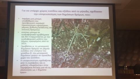 «Για την προστασία της πόλης μας θεωρούμε ότι πρέπει να γίνουν κάποιες παρεμβάσεις και κάποια έργα. Φτιάξαμε ένα υπόμνημα προς το ΥΠΕΝ και την Περιφέρεια. Ζητάμε κατασκευή χώρου στάθμευσης 3.000 θέσεων. Τρεις υπόγειοι χώροι μπορούν να χρησιμοποιηθούν ή να πάνε σε όμορους δήμους. Ζητάμε μετεγκατάσταση του αμαξοστασίου και των υπηρεσιών καθαριότητας. Εναρμόνιση με την κυκλοφοριακή μελέτη του Δήμου, υλοποίηση του χρονοδιαγράμματος του Μετρό, κατάργηση ότι μπορεί να χρησιμοποιηθεί το 5% του άλσους για αθλητικές εγκαταστάσεις. Παραχώρηση της κυριότητας ολόκληρου του άλσους στο Δήμο. Μείωση του ύψους του γηπέδου και τροποποίηση των όψεων. Στέγαση τμημάτων της ερασιτεχνικής ΑΕΚ στο υπό ανέγερση γήπεδο. Μέτρα για τη μείωση του ενεργειακού αποτυπώματος και μέτρα για την προστασία του άλσους και της περιοχής».