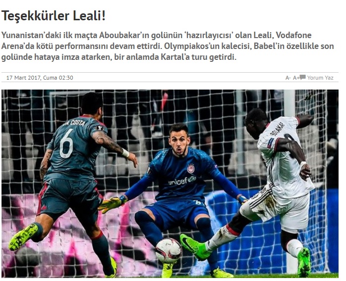 Η τουρκική εφημερίδα Fanatik πάει ένα βήμα παραπέρα ευχαριστώντας τον 24χρονο τερματοφύλακα για την πρόκριση της Μπεσίκτας.