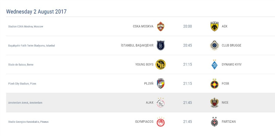 Για τις 2 Αυγούστου έχει ορίσει η UEFA στο πρόγραμμά της τη ρεβάνς του Ολυμπιακού με την Παρτιζάν στο γήπεδο Καραϊσκάκη για τον 3ο προκριματικό του Champions League.