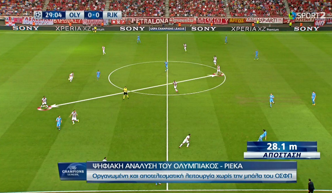 Σε αυτό το δίλεπτο ήταν σαν να βλέπεις από τον Ολυμπιακό την εφαρμογή της βασικής ιδέας που εφαρμόζει στο τερέν η Ατλέτικο Μαδρίτης του Ντιέγκο Σιμεόνε. Μια ιδέα που απαιτεί πάρα πολύ υψηλό επίπεδο φυσικής κατάστασης για να εφαρμοστεί επιτυχημένα. Και αυτή η ιδέα του Χάσι φανέρωνε την καθαρή επιλογή που έκανε για το αγωνιστικό του σχέδιο: να στριμώξω τη Ριέκα και να επηρεάσω το παιχνίδι της ομάδας μου προκειμένου να δημιουργηθούν συνθήκες για γκολ, να προηγηθούμε όσο έχουμε δυνάμεις και μετά να κάνουμε διαχείριση των δυνάμεών μας και να σχεδιάσουμε ένα διάστημα αντίστοιχης πίεσης στα τελευταία λεπτά του παιχνιδιού.