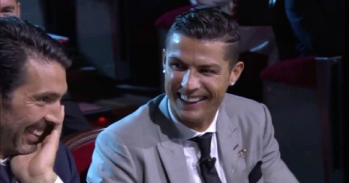 Ρονάλντο, Μπουφόν και Μέσι ήταν υποψήφιοι για το τίτλο του κορυφαίου ποδοσφαιριστή της σεζόν, με το βραβείο να καταλήγει στον Πορτογάλο σταρ της Ρεάλ Μαδρίτης. Η παρουσιάστρια της εκδήλωσης ρώτησε τον Ρονάλντο ποιο ήταν τα καλύτερό του γκολ στη διοργάνωση, με εκείνον να απαντάει θέλοντας να...πειράξει τον Μπουφόν: «Το τελευταίο κόντρα σε αυτόν εδώ τον γέρο». Η αντίδραση του Ιταλού πορτιέρε ήταν να ξεσπάσει σε γέλια.