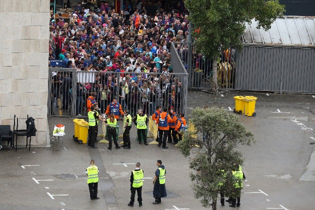 Τα ποδοσφαιρικά... απόνερα του δημοψηφίσματος δεν γινόταν να μην φτάσουν στο «Καμπ Νόου». Εξω από το γήπεδο όλη μέρα ο κόσμος έβραζε. Στ' αποδυτήρια επικράτησε επίσης αναβρασμός. Ο Πικέ έλεγε να μην αγωνιστούν και οι υπόλοιποι το αντίθετο. Επισήμως, η Μπαρτσελόνα ζητούσε ν' αναβληθεί η αναμέτρηση με τη Λας Πάλμας, αλλά υποχρεώθηκε από την Ομοσπονδία να παραταχθεί στο χορτάρι. Φρόντισε όμως να εξηγήσει ότι θα το κάνει χωρίς οπαδούς. Από αντίδραση; Υπό το φόβο επεισοδίων; Σημασία είχε ότι ο Μέσι και η παρέα του πάτησαν χορτάρι και 90.000 ήταν κλειδωμένοι απ' έξω. Ακόμα κι έτσι όμως η Μπάρτσα φρόντισε να κάνει τη δουλειά και με το 3-0 να συνεχίσει το απόλυτο 7x7.