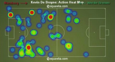 *Στο πρώτο γράφημα ο χώρος που κινήθηκε ο Ντε Μπρούιν στην ισοπαλία 1-1 με την Γκλάντμπαχ και στο δεύτερο στην ήττα 3-2 από τη Νυρεμβέργη. (πηγή squawka)