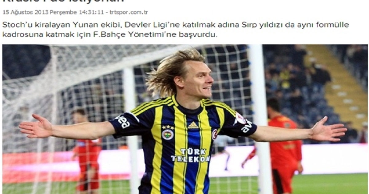 Μάλιστα, επικαλείται και την εφημερίδα ΑΜΚ, στην οποία φέρεται να έχει κάνει δηλώσεις ο Γιώτης Παναγιωτάς, εκπρόσωπος Τύπου του ΠΑΟΚ. «Όπως και ο Στοχ, έτσι και ο Μίλος Κράσιτς έχει πολλή ποιότητα, γνωστή σε όλη την Ευρώπη», φέρεται να τονίζει και να προσθέτει ότι ο Σέρβος αποτελεί ενδιαφέρουσα περίπτωση. Μάλιστα, οι Τούρκοι τονίζουν ότι η Φενέρ μπορεί να τον στείλει στον ΠΑΟΚ με την ίδια φόρμουλα όπως και τον Στοχ!