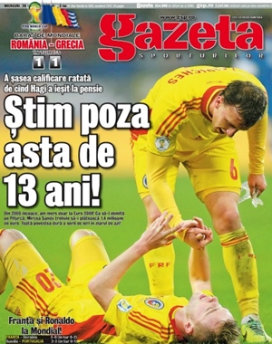 Η Gazzetta της Ρουμανίας αναφέρει: «Ο Μήτρογλου μας χτύπησε και μας άφησε σπίτι μας!» Παράλληλα, κάνει ξεχωριστή μνεία στον κόσμο της ομάδας: «Η νύχτα που διοργανώσαμε το Παγκόσμιο Κύπελλο. Με 50.000 Ρουμάνους το γήπεδο έζησε πιθανότατα τις πιο όμορφες στιγμές του». Στην έντυπη έκδοσή της έχει μια εικόνα με τον Μαξίμ απαρηγόρητο στο χορτάρι και τον Κίρικες από πάνω του, με τον τίτλο: «Γνωρίζουμε αυτή την εικόνα τα τελευταία 13 χρόνια»!