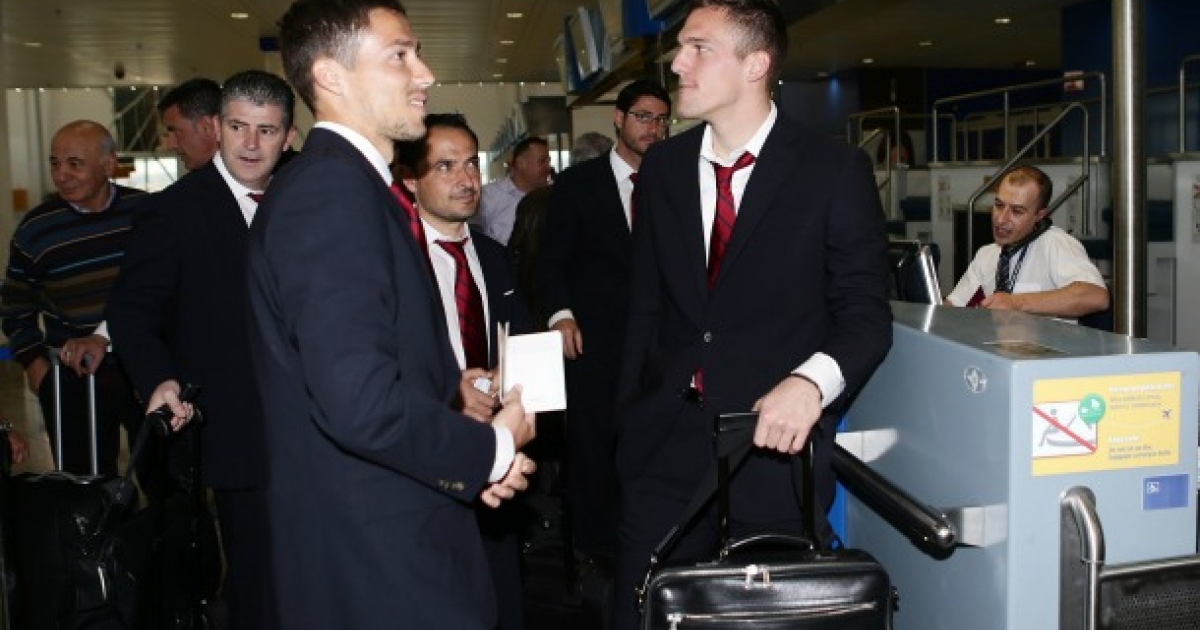 Η πτήση αν και είχε αρκετές αναταράξεις ήταν ευχάριστη για τους «ερυθρόλευκους αφού οι περισσότεροι συνοδεύονταν από τις συντρόφους τους.