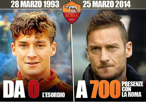 Ο 37χρονος επιθετικός έπαιξε βασικός στη νίκη των Τζαλορόσι κόντρα στην Τορίνο στο «Ολίμπικο» και συμπλήρωσε 700 συμμετοχές με τον σύλλογο, επίδοση που τον έφερε ανάμεσα σε παίκτες-θρύλους του παρελθόντος. Ο Ρωμαίος έκανε ντεμπούτο στις 28 Μαρτίου του 1993 και 21 χρόνια μετά, βλέπει το ονόματα του δίπλα άλλα που κόβουν την ανάσα.