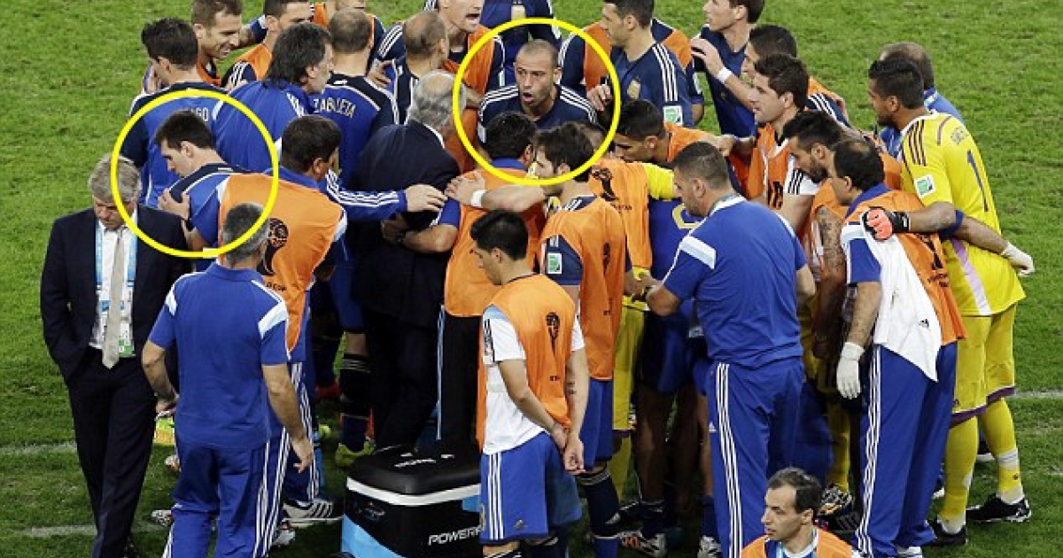 Τη στιγμή που Σαμπέγια και Μασεράνο έδιναν οδηγίες πριν την παράταση του τελικού Αργεντινής-Γερμανίας, ο τηλεοπτικός φακός «έπιασε» τον Μέσι να είναι... αλλού.