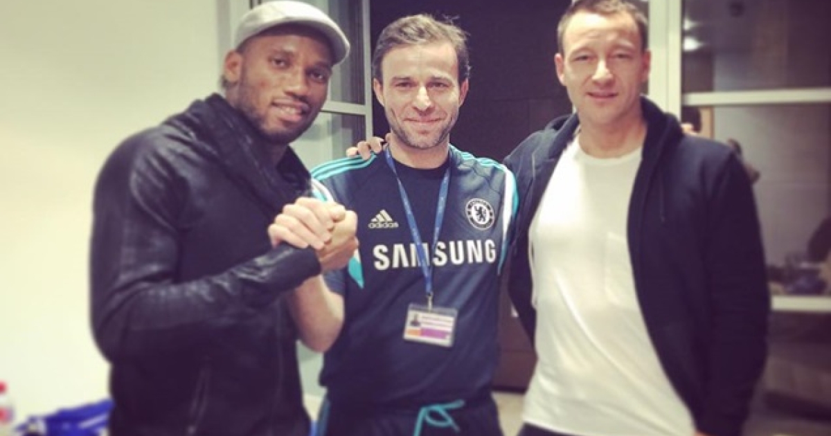 Ήρθε όμως σε επαφή και με τους ποδοσφαιριστές. Στη φωτογραφία που συνοδεύει και το θέμα, μπορεί κανείς να δει τον Ντιντιέ Ντρογμπά και τον Τζον Τέρι. «Είναι εντυπωσιακό να είσαι με όλους αυτούς τους διάσημους παίκτες. Δεν έτυχε να είμαι στο χειρουργείο με αυτούς, αλλά υπήρχαν άλλοι παίκτες της Premier League. Με τους παίκτες της Τσέλσι είχαμε άλλα, κάναμε κάποιες ενέσεις, όχι σαν νοσηλευτές, αλλά αυτές τις εναρθριτικές, τα βλαστοκύτταρα και άλλα που είναι πολύ συχνό φαινόμενο εκεί. Τώρα οι συγκεκριμένοι, ο Τέρι και ο Ντρογμπά είναι είδωλα και όχι μόνο για την Τσέλσι, αλλά για όλο το Λονδίνο. Είναι θρύλοι. Ειδικά όταν περπατάς τους διαδρόμους του Κόμπαμ και βλέπεις τις φωτογραφίες από τις κατακτήσεις και όλες τις μεγάλες στιγμές, είναι ανατριχιαστικό. Δεν είναι τυχαίοι και είναι και οι υπόλοιποι που τους βλέπουν με σεβασμό. Είναι όμως πολύ απλοί. Παίζει βέβαια ρόλο και το ότι είσαι σε ένα χώρο που δεν υπάρχει κάποιος "άσχετος". Είναι πολύ προσγειωμένοι και εδικά με τον Ντιντιέ, επειδή μιλάω και γαλλικά, είχαμε καλή σχέση. Να πούμε την αλήθεια, δεν γίνεσαι κολλητός με κάποιον. Αλλά σε κοιτάνε και εκείνοι με σεβασμό. Είναι εξαιρετικοί άνθρωποι. Ο Πετρ Τσεχ για παράδειγμα μιλάει 7 γλώσσες, όλοι είναι πολύ υψηλού επιπέδου και στις διαπροσωπικές σχέσεις δεν βλέπεις χαμηλό επίπεδο. Όλοι είναι φιλικοί γιατί ξέρουν ότι έχεις την άδεια να είσαι στο χώρο εκεί. Αυτοί είναι συνέχεια στο προσκήνιο και τους ζητούν συνέχεια πράγματα, οπότε πρέπει να είσαι προσεκτικός».