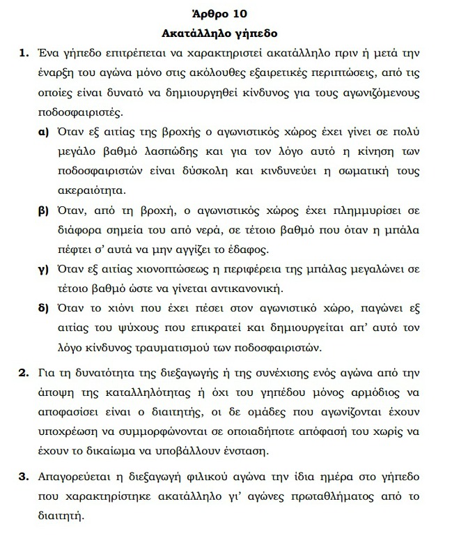 Τι αναφέρει το άρθρο 10 για ακατάλληλο γήπεδο