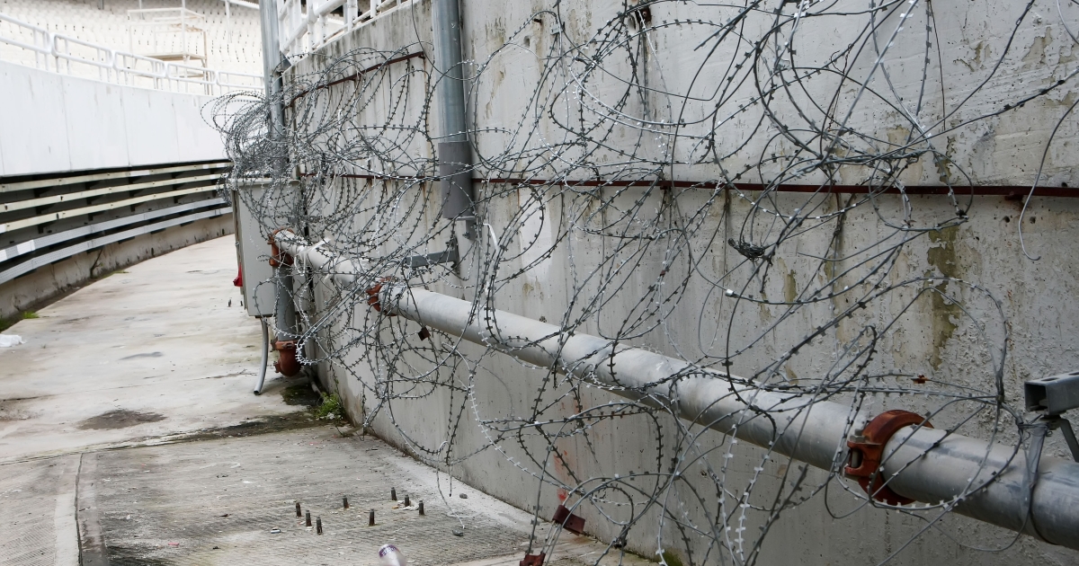 Ο φόβος για επεισόδια στο σούπερ ντέρμπι του Κυπέλλου Ελλάδας ανάμεσα στην ΑΕΚ και τον Ολυμπιακό έχει μετατρέψει το ΟΑΚΑ σε… φρούριο! Οι εργασίες συνεχίζονται πυρετωδώς, με δίχτυα ασφαλείας να σηκώνονται μπροστά από το πέταλο των οργανωμένων, ενώ αίσθηση έχει προκαλέσει και η εγκατάσταση συρματοπλεγμάτων με… αγκάθια (!) στην τάφρο του γηπέδου. Το gazzetta.gr σας είχε ενημερώσει από την Δευτέρα για τα μέτρα ασφαλείας στο ΟΑΚΑ.