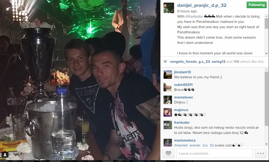 Ξέρω πως πήρε έκταση το θέμα… Ο Ντάνιελ είπε την άποψή του για κάτι που με είχε απογοητεύσει. Είχα έρθει με πολλά όνειρα στον Παναθηναϊκό, όμως τα πράγματα δεν εξελίχθηκαν όπως τα περίμενα. Είμαι ευτυχισμένος πλέον στη Χάιντουκ, άνοιξε νέος δρόμος στην καριέρα μου και ελπίζω να αποδείξω ποιος είμαι. Ο Πράνιτς είναι φίλος μου, τον σέβομαι απεριόριστα και είναι άνθρωπος που ότι πιστεύει και αισθάνεται θα το πει».