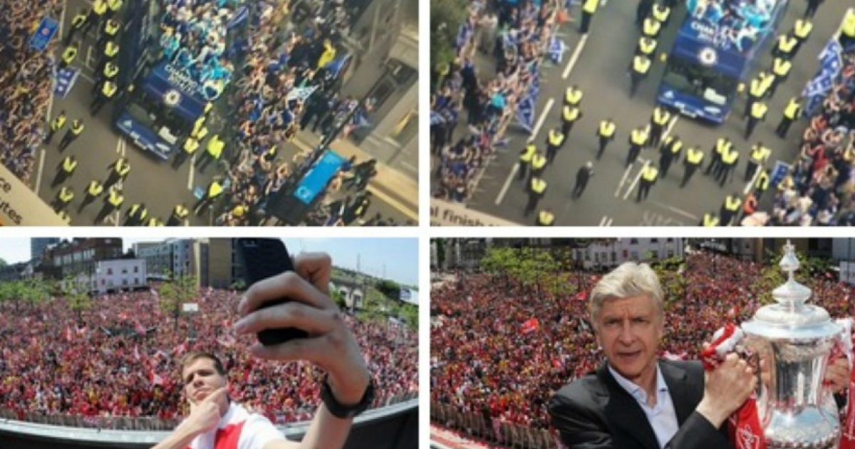 «Είναι ωραίο να βλέπεις τους φίλους της Τσέλσι να γυρίζουν την πλάτη στην παρέλαση» «Δεν είμαι σίγουρος αν πρόκειται για παρέλαση νίκης της Τσέλσι ή σχολική εκδρομή», «Η Τσέλσι δεν είχε ούτε τους μισούς οπαδούς από αυτούς που είχε πέρσι η Αρσεναλ για το κύπελλο. Ταπείνωση...», «Η Τσέλσι κέρδισε τον τίτλο, αλλά η Αρσεναλ με κύπελλο ήταν αυτή που είχε 250.000 οπαδούς στην παρέλαση», «Η Αρσεναλ είχε 70.000 οπαδούς στην παρέλαση κα η Τσέλσι 350.000 lol».