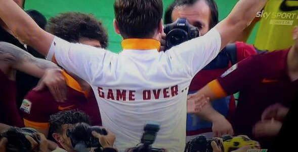 Η Ρόμα έριξε στο καναβάτσο τη Λάτσιο και την έστειλε στο Σαν Πάολο να εξασφαλίσει την έξοδό της στο Τσάμπιονς Λιγκ. Στο τελευταίο σφύριγμα του ντέρμπι, ο Τότι φόρεσε μπλουζάκι στέλνοντας το δικό του μήνυμα «Game Over». Οχι, δεν κρέμασε τα παπούτσια του, δεν αποσύρθηκε από την ενεργό δράση, αλλά απάντησε στο... κράξιμο του Κλαούντιο Λοτίτο «Είσαι όλο λόγια, να δω τι θα σκεφτείς τώρα».