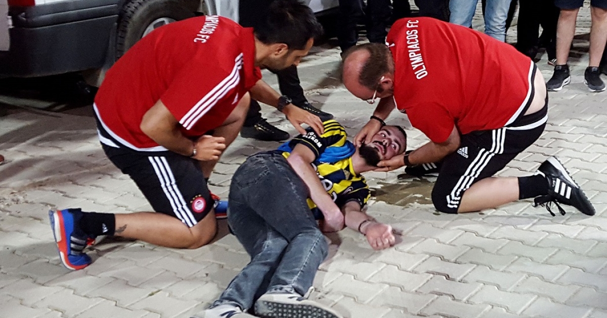 Η στιγμή που ο γιατρός του Ολυμπιακού σώζει τον Τούρκο οπαδό (vid)