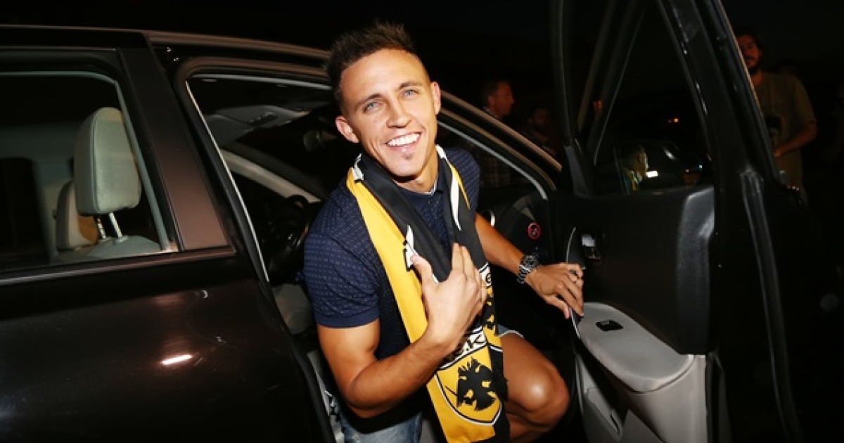 Έτσι κι έγινε. Από τις 19:00 οι οπαδοί της ΑΕΚ άρχισαν να συγκεντρώνονται στο «Ελευθέριος Βενιζέλος», παρά την ζέστη και το ότι είναι παραμονές Δεκαπενταύγουστου! Όσο περνούσε η ώρα ο κόσμος αυξανόταν και τελικά, με μικρή καθυστέρηση, το αεροπλάνο του Αργεντινού προσγειώθηκε γύρω στις 21.00. Κατέβηκε με την οικογένειά του και τον ατζέντη του, με τον Μπράνκο Μιλοβάνοβιτς να τους περιμένει. Ένα αυτοκίνητο συνοδεία περιπολικού τους μετέφερε στην πύλη 7.