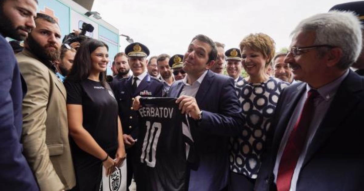 Ο αρχηγός του ΣΥΡΙΖΑ πέρασε από το περίπτερο του ΠΑΟΚ στη ΔΕΘ και πήρε στα χέρια του τη φανέλα του Βούλγαρου επιθετικού, δείχνοντας εντυπωσιασμένος από την κίνηση του «δικεφάλου του βορρά».