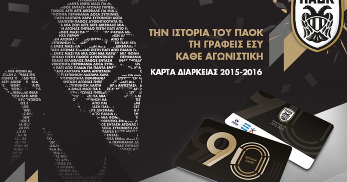 "Την Παρασκευή (11.09) ολοκληρώνεται η πώληση των εισιτηρίων διαρκείας για την αγωνιστική σεζόν 2015-16, με τους φίλους της ομάδας να έχουν μία τελευταία ευκαιρία να κλείσουν θέση στο γήπεδο της Τούμπας. Τα εκδοτήρια θα παραμείνουν ανοιχτά μέχρι το απόγευμα της Παρασκευής στις 19:00, ώρα μέχρι την οποία θα συνεχίζεται η διάθεση και μέσω Internet.Η καινοτομία των εισιτηρίων διαρκείας σε σχέση με τις προηγούμενες αγωνιστικές περιόδους είναι πως ο ΠΑΟΚ ενισχύει την οικογενειακή κερκίδα. Ενός ειδικά διαμορφωμένου, ασφαλούς χώρου ειδικά για τους γονείς που θέλουν να περάσουν τη… μαγεία του γηπέδου στα παιδιά τους. Μέσα από την οικογενειακή κερκίδα ο ΠΑΟΚ πρωτίστως στοχεύει στη μετάδοση αξιών όπως η παράδοση, το πάθος, η αυθεντικότητα, η αξιοκρατία, η ευαισθησία και η ενότητα και δευτερευόντως στην «εκπαίδευση» της νέας γενιάς φιλάθλων. Στη δημιουργία ενός ενεργού Fan Club που θα έρχεται στο γήπεδο να διασκεδάσει, να συμμετάσχει σε πληθώρα εκδηλώσεων και να δημιουργήσει τον πυρήνα του αύριο κάνοντας πράξη το μόττο #oneteam #onefamily. Πλέον ένας ή δύο κηδεμόνες μπορούν να αγοράσουν οικογενειακό εισιτήριο διαρκείας στη Θύρα 7α με τα 1-3 παιδιά τους να βλέπουν τους όλους τους αγώνες του ΠΑΟΚ εντελώς δωρεάν. Παράλληλα, ο ΠΑΟΚ για τη σεζόν 2015-16 σε όσους αγοράσουν εισιτήριο διαρκείας προσφέρει τη δυνατότητα να αγοράσουν και παιδικό εισιτήριο σε οποιαδήποτε θύρα του γηπέδου με έκπτωση 50%. Αντίστοιχη είναι και η έκπτωση για τα εισιτήρια ΑΜΕΑ, ενώ η καινούρια κατηγορία εισιτηρίων είναι τα εταιρικά.