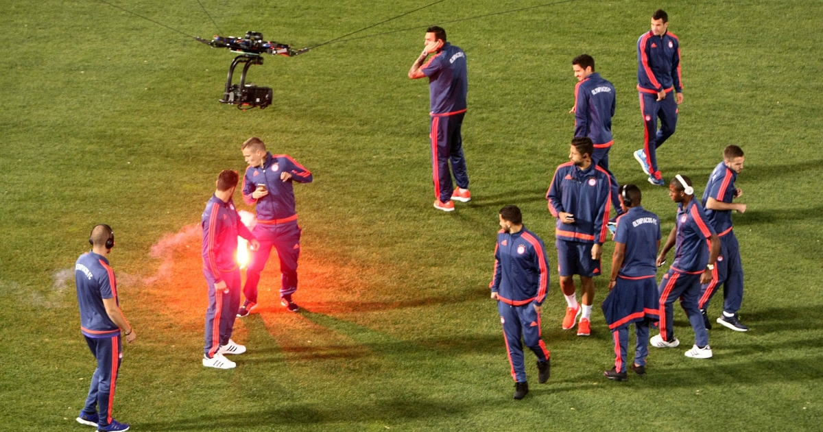 Ως προς το... story με το που έφτασε η αποστολή του Ολυμπιακού οι ερυθρόλευκοι μπήκαν στον αγωνιστικό χώρο για το αναγνωριστικό περπάτημα. Και όλα έδειχναν αρκετά ήρεμα με την είσοδο του Ρομπέρτο αρχικά. Στην συνέχεια όμως και ενώ βγήκε σχεδόν όλη η αποστολή στο γήπεδο έφυγαν τουλάχιστον 4 φωτοβολίδες με πιστόλι προς τους παίκτες του Ολυμπιακού. Η μία από αυτές βρήκε τον Άλφρεντ Φινμπόγκασον και αυτόματα ο Σάββας Θεοδωρίδης κάλεσε όλη την ομάδα να μπει στα αποδυτήρια.