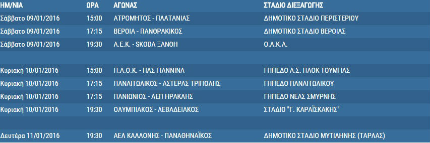 To πρόγραμμα της 17ης αγωνιστικής