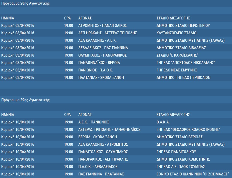 Αναλυτικά το πρόγραμμα της Σούπερ Λίγκας από την 20ή μέχρι την 30ή αγωνιστική