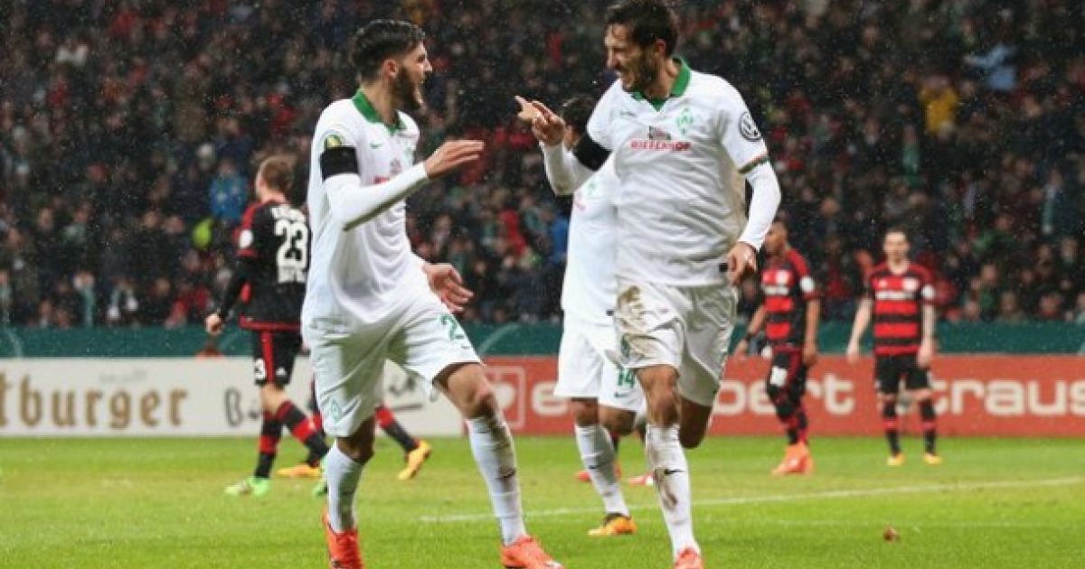 Μεγάλη ανατροπή και πρόκριση για την Βέρντερ, που επιβλήθηκε με 3-1 της Μπάγερ στο Λεβερκούζεν. Οι γηπεδούχοι προηγήθηκαν, όμως έμειναν με 10 παίκτες μόλις από το 42' και οι πράσινοι το εκμεταλλεύτηκαν, για να ξεχάσουν τα προβλήματά τους στο πρωτάθλημα και να δώσουν το παρών στα ημιτελικά του Κυπέλλου.