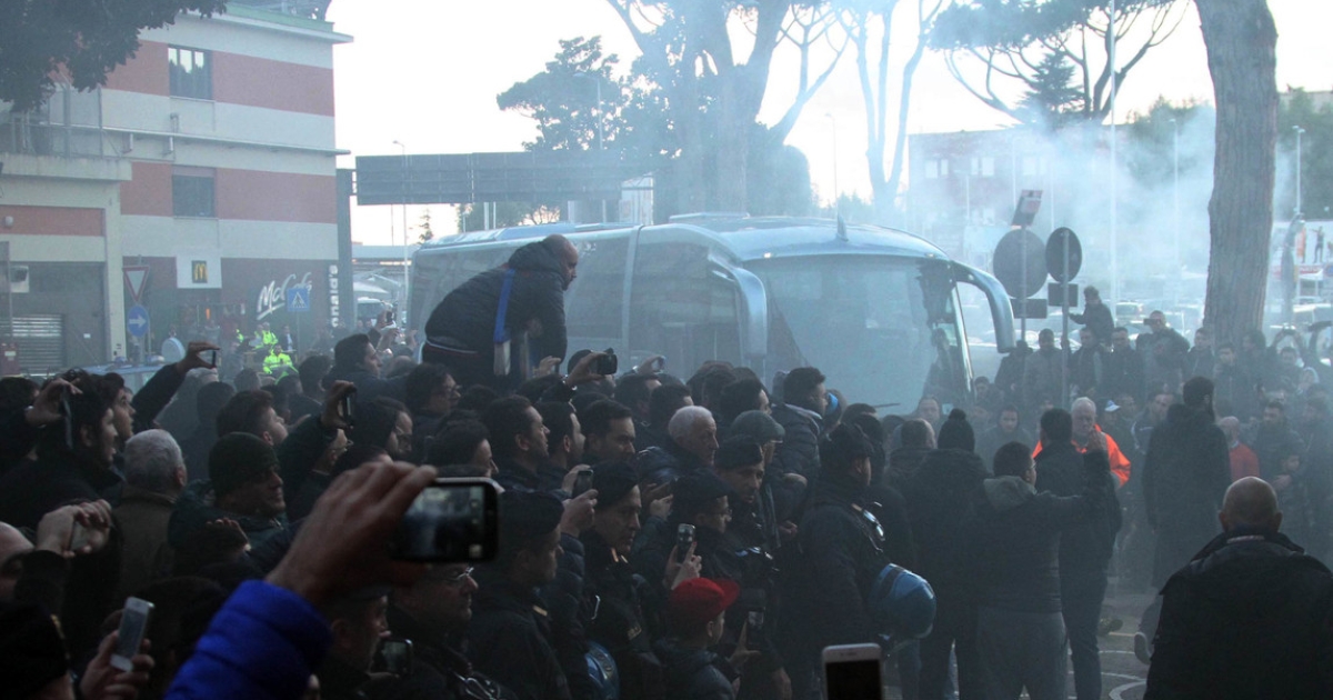 Οι Ναπολιτάνοι δεν θα είναι στο Juventus Stadium, για λόγους ασφαλείας, όπως δεν ήταν και αυτοί των Μπιανκονέρι στον πρώτο γύρο στο San Paolo. Ετσι, μετέτρεψαν σε... curva το όλο σκηνικό κατά την αναχώρηση της αποστολής για το αεροδρόμιο, από όπου θα πετάξει για Τορίνο.