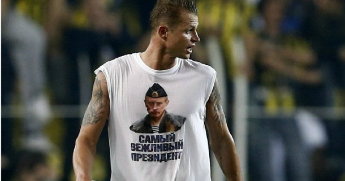 Οι σχέσεις Ρωσίας και Τουρκίας στο... κόκκινο, όμως το γεγονός αυτό δεν επηρέασε τον Ντμίτρι Ταράσοβ να ρίξει λάδι στη φωτιά. Αμέσως μετά το τέλος του ματς με τη Φενέρμπαχτσε, ο παίκτης της Λοκομοτίβ έβγαλε τη φανέλα του για να δείξει το μπλουζάκι που φορούσε από μέσα. Σε αυτό απεικονιζόταν ο Βλάντιμιρ Πούτιν με στρατιωτική στολή και η λεζάντα ανέφερε «Ο πιο ευγενικός πρόεδρος». Η κίνηση του 28χρονου προκάλεσε την έντονη αντίδραση των Τούρκων, ενώ θεωρείται πιθανή η τιμωρία του από την UEFA! ««Είναι ο πρόεδρός μου. Τον σέβομαι και θέλησα να εκδηλώσω την στήριξή μου προς το πρόσωπό του. Τα είπα όλα με αυτή τη μπλούζα» τόνισε ο Ταράσοβ.