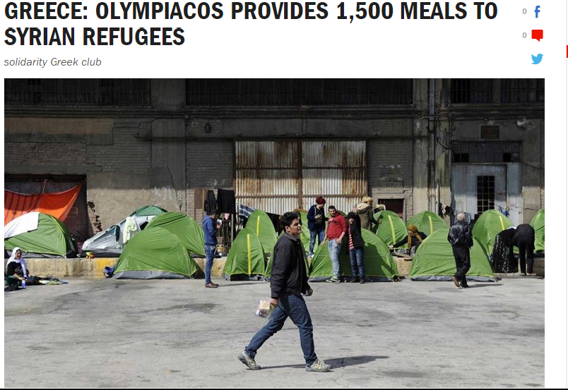 Τον... γύρο της Ευρώπης κάνει η κίνηση του Ολυμπιακού να προσφέρει καθημερινά στους πρόσφυγες πάνω από 1.300 μερίδες φαγητού. Μετά την Marca έγινε θέμα και από την πορτογαλική εφημερίδα «Record».