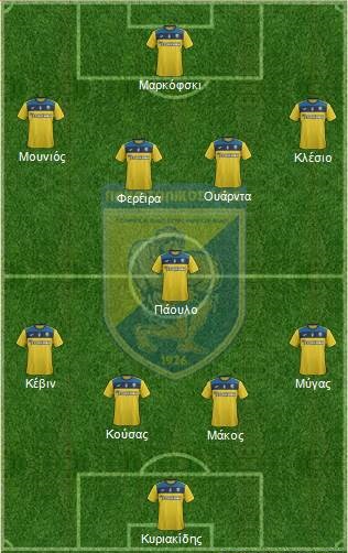 Αυτή, λοιπόν, θέλει τον Κυριακίδη κάτω από τα δοκάρια, τον Μύγα δεξιά στην άμυνα, τον Κέβιν αριστερά και τους Μάκο, Κούσα στα στόπερ. Μοναδικό αμυντικό χαφ ο Πάουλο και μπροστά του δεξιά ο Κλέσιο, αριστερά ο Μουνιός και εσωτερικοί χαφ οι Ουάρντ, Φερέιρα. Στην κορυφή της επίθεσης ο Μαρκόφσκι.