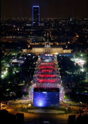 Βγήκαν ονόματα όπως οι Christophe Mae, Florent Pagny, Enrique Iglesias), αλλά και ο Will I Am από τους Black Eyed Peas. Ο κόσμος δεν σταματούσε να χορεύει. Το εκπληκτικό ήταν πως άτομα από τόσες διαφορετικές χώρες, ο καθένας με ένα διακριτικό της ομάδας του, συνυπήρχαν με ενθουσιασμό σε μια γιορτή. Τα συνθήματα υπέρ της Γαλλίας φυσικά κυριαρχούσαν, όμως δεν ήταν τα μοναδικά και σίγουρα κανείς δεν προσπάθησε να επιβληθεί σε όσους φώναζαν υπέρ άλλων ομάδων.