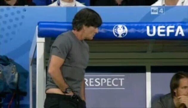 Σε παλαιότερες διοργανώσεις η κάμερα τον έχει 'πιάσει' να τρώει τις μύξες του και ο Γερμανός κατάφερε και τώρα να τραβήξει τα βλέμματα. Ο Λεβ έβαλε το χέρι του μέσα στο παντελόνι για να... τακτοποιήσει τα γεννητικά του όργανα και στη συνέχεια το επανέφερε στη μύτη του, προφανώς για να τηρήσει κάποιο γούρι... Το ίδιο έκανε μετά και με τα οπίσθιά του.