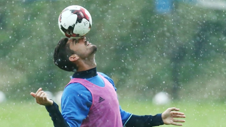 Ο Ανδρέας Μπουχαλάκης έμεινε για λίγο στον αγωνιστικό χώρο για να κάνει κολπάκια με την μπάλα εν μέσω βροχής!