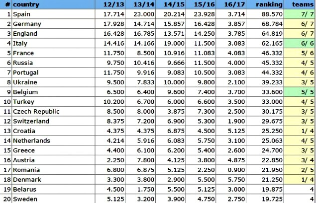 Μοιραία ήταν για την Ελλάδα η ήττα του Παναθηναϊκού από τον Άγιαξ, καθώς έδωσε την ευκαιρία στους Ολλανδούς να περάσουν εκ νέου από πάνω και να μας... γκρεμίσουν στην 15η θέση της ειδικής κατάταξης.