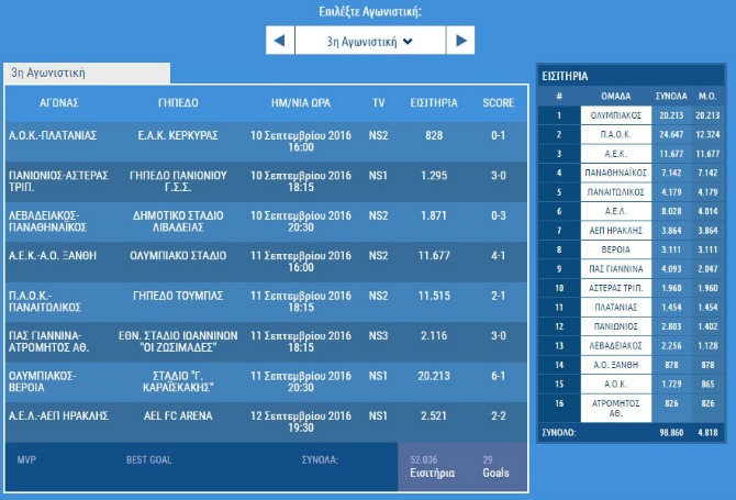 Αρνητικό ρεκόρ από τους Βοιωτούς με 385 εισιτήρια που τα τελευταία χρόνια δεν συνηθίζει να συγκεντρώνει τόσο κόσμο στο γήπεδό του. Δείτε πιο κάτω τους σχετικούς αριθμούς της προσέλευσης σε αγώνες στις 3 πρώτες αγωνιστικές: