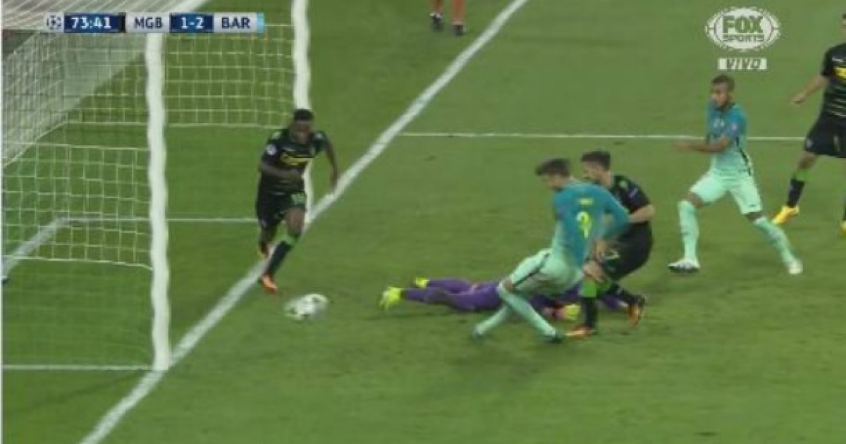 Ο Σουάρες έκανε το σουτ, ο Ζόμερ έχασε την μπάλα μέσα από τα χέρια του και ο Πικέ από κοντά έκανε το 2-1 για την Μπαρτσελόνα επί της Γκλάντμπαχ.