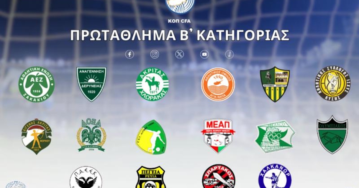 «Οι δεκαέξι ομάδες που θα λάβουν μέρος στο Πρωτάθλημα Β' Κατηγορίας περιόδου 2024 - 2025, θα αγωνιστούν στα πιο κάτω στάδια: