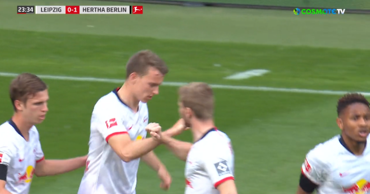 Αντέδρασε γρήγορα η Λειψία κόντρα στο 0-1 της Χέρτα, με τον Κλόστερμαν να σκοράρει και πάλι από κόρνερ, μετά την εκτέλεση του Ενκουνκού στο πρώτο δοκάρι.