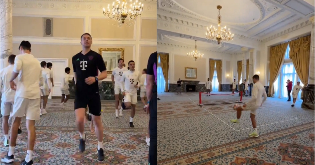 Σε video που δημοσίευσε στα social media η Μπάγερν, οι παίκτες της φαίνεται να προπονούνται και να παίζουν μέχρι και ποδοβόλεϊ σε αίθουσα δεξιώσεων του ξενοδοχείου Μέριλμποουν, η οποία χρεώνεται μέχρι και 4000 ευρώ την ώρα. Ο λόγος για τον οποίο οι Βαυαροί επέλεξαν να προπονηθούν στο συγκεκριμένο μέρος δεν έγινε γνωστός αλλά αναμενόμενα τράβηξε τα βλέμματα.