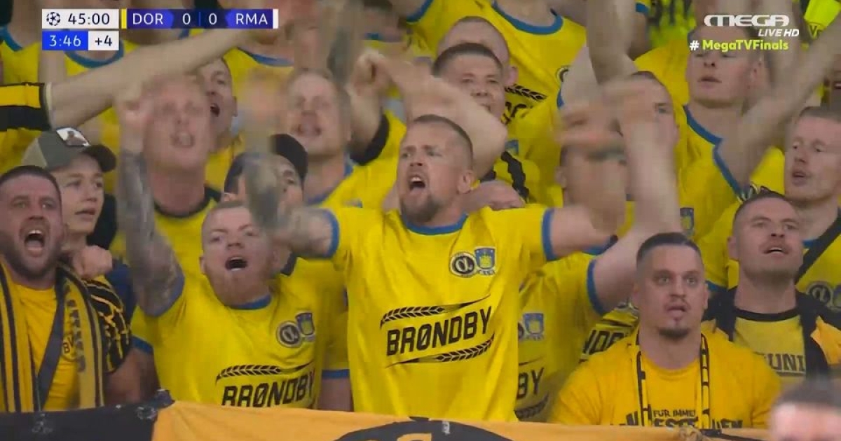 Οπαδοί της Μπρόντμπι βρίσκονται στην κερκίδα της Ντόρτμουντ και παρακολουθούν μαζί τον σπουδαίο τελικό του Champions League απέναντι στη Ρεάλ Μαδρίτης.