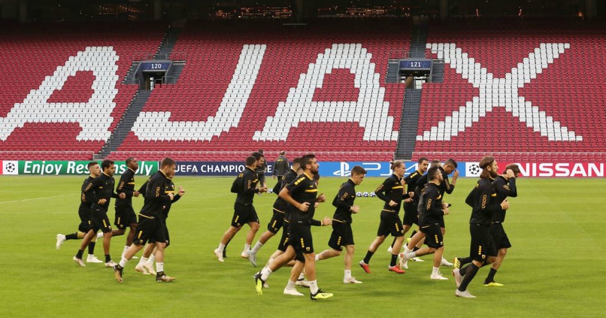 Εκτός από την ΑΕΚ, και για τον Άγιαξ η φετινή χρονιά σηματοδοτεί την επιστροφή του στην κορυφαία διασυλλογική διοργάνωση. Οι φίλοι του «Αίαντα» περιμένουν με ανυπομονησία την αποψινή αναμέτρηση απέναντι στην ΑΕΚ, την οποία ο τεχνικός της ολλανδικής ομάδας, Ερικ Τεν Χαγκ χαρακτήρισε «έξυπνη» στον τρόπο που διαχειρίζεται τα παιχνίδια της. Στα αγωνιστικά ο Κάσπερ Ντόλμπεργκ είχε κάποιες ενοχλήσεις στο γόνατο και το πιθανότερο είναι να καθίσει στον πάγκο. Έτσι μια πιθανή σύνθεση για τον Άγιαξ είναι με τους: Ονανά, Μαζραουί, Ντε Λιχτ, Μπλιντ, Ταλιαφίκο, Σένε, Νέρες (ή Φαν Ντε Μπέεκ), Ντε Γιόνγκ, Ζιγιέχ, Τάντιτς, Χούντελαρ.