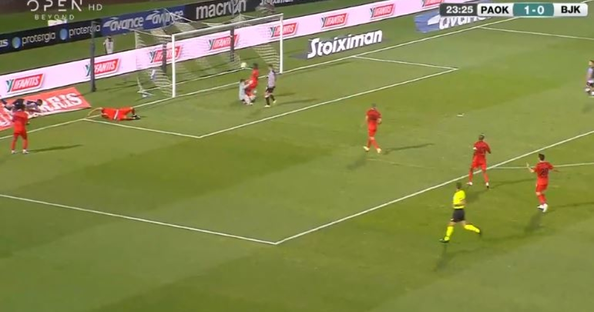 Ο Πέλκας «τσίμπησε» την μπάλα παίζοντας κάθετα για τον Άκπομ, ο οποίος νίκησε τον αμυντικό της Μπεσίκτας και έστρωσε στον Τζόλη μέσα στην περιοχή με τον νεαρό φορ του ΠΑΟΚ να γράφει το 2-0 με το δεύτερο προσωπικό του τέρμα στο ματς.